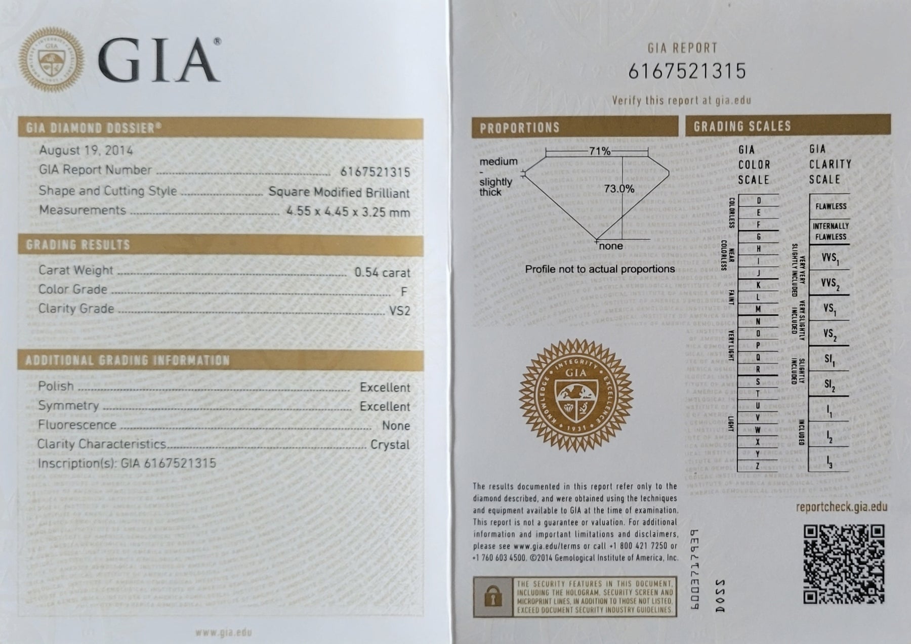The princess cut's geometric precision creates sharp, modern lines that demand attention, while complementing the platinum ring's superior durability and cool, bright, silvery-white tone, creating a sophisticated setting that enhances diamond visibility. A refined choice for discerning collectors seeking exceptional quality and timeless design. Ring size is 5.5 and can be resized up or down up to 2 sizes for FREE.