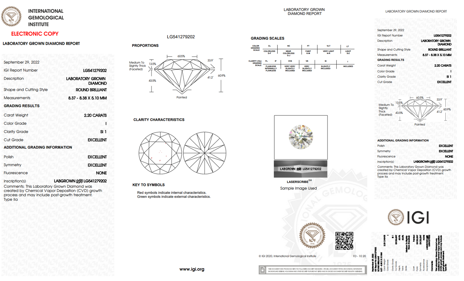 IGI provides high-quality grading services for both natural, mined and lab-grown diamonds, as well as finished jewellery. One of the few gemological laboratories to earn an ISO certification (an international standard for quality management systems), their dedication to quality control and best practices has solidified IGI in the industry as one of the world's most trusted and reputable grading labs for diamonds and jewellery. As one of the top two identifiers and appraisers of lab grown diamonds (GIA being the other), IGI is a leader this new and emerging market. In an independent study where the same 10 diamonds were sent to 6 major gem-labs to assess the quality and consistency of their grades, they found IGI to be the 2nd strictest in their grading standards, only behind GIA.